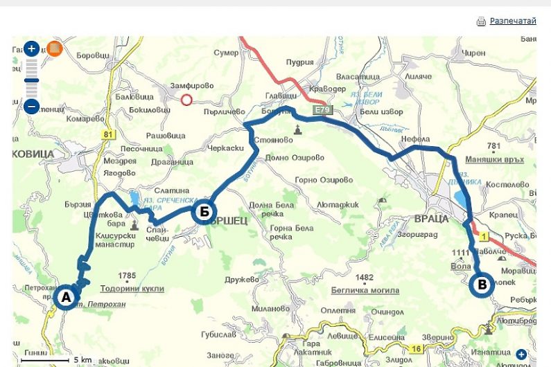 12:17 ч., с. Бели извор – вече колата е в област Враца и тръгва по международния път Е-79;