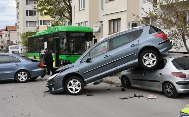 Голямо меле тази сутрин: Градски рейс поете 5 коли. Разхвърля ги една върху друга