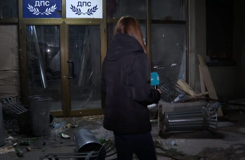 Как изглежда централата на „ДПС-Ново начало“ след протеста снощи (ВИДЕО)