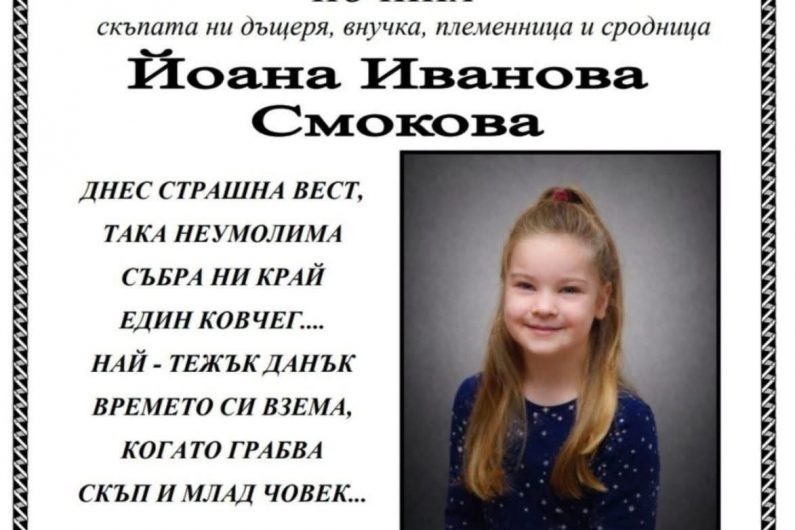 Днес, 1 април, ще се състои погребението на 4-годишната Йоана Смокова, която почина на 29 март в болницата в Добрич, предаде Про нюз Добрич.