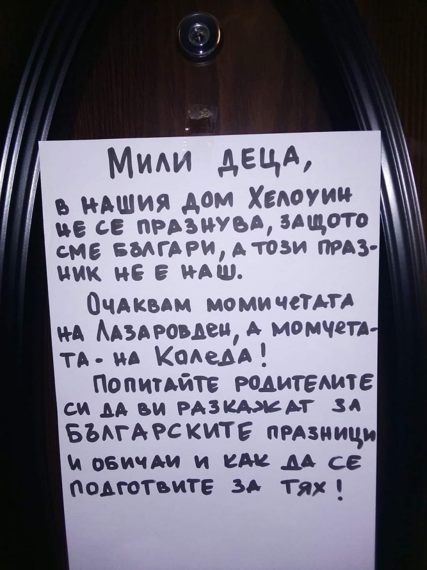 Забраната на Хелоуин в община Елин Пелин успя да раздели на два крайни лагера иначе сплотените хора. Едните си закичиха на вратите табелки „Ние не празнуваме Хелоуин“, докато другите широко отваряха вратите си на „Пакост или лакомство“.