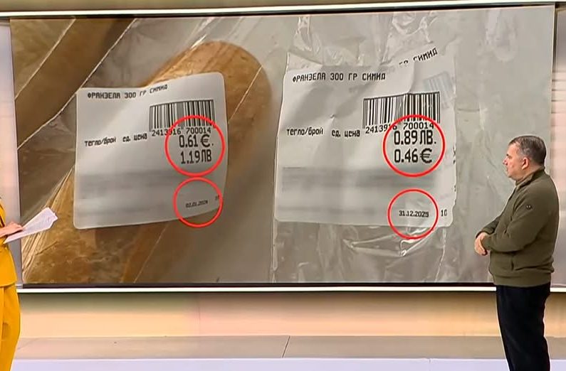 Сред най-стряскащите примери е хляб „Франзела Симит“ (300 гр.), закупена от голяма търговска верига. На 31 декември 2025 г. цената му е била 0,89 лв. (0,46 евро). На 2 януари 2026 г. същият артикул вече струва 1,19 лв. (0,61 евро). Това е скок от 33% само в рамките на два дни – промяна, която според експертите трудно може да бъде обоснована и изглежда като неоправдано повишение.