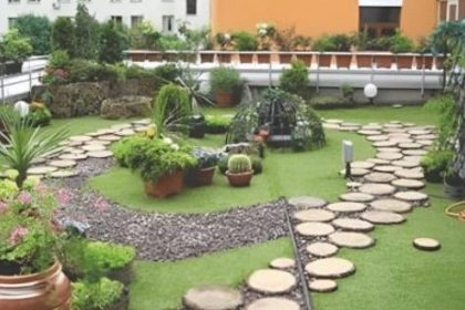 Цветна райска градинка грейна на покрива на панелен блок в България