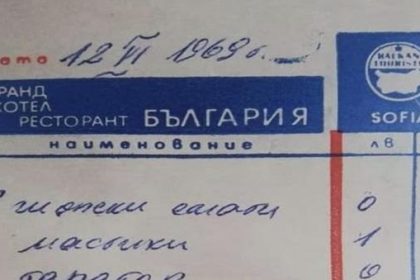 Сметка за консумация в Гранд-хотел България от 1969г.